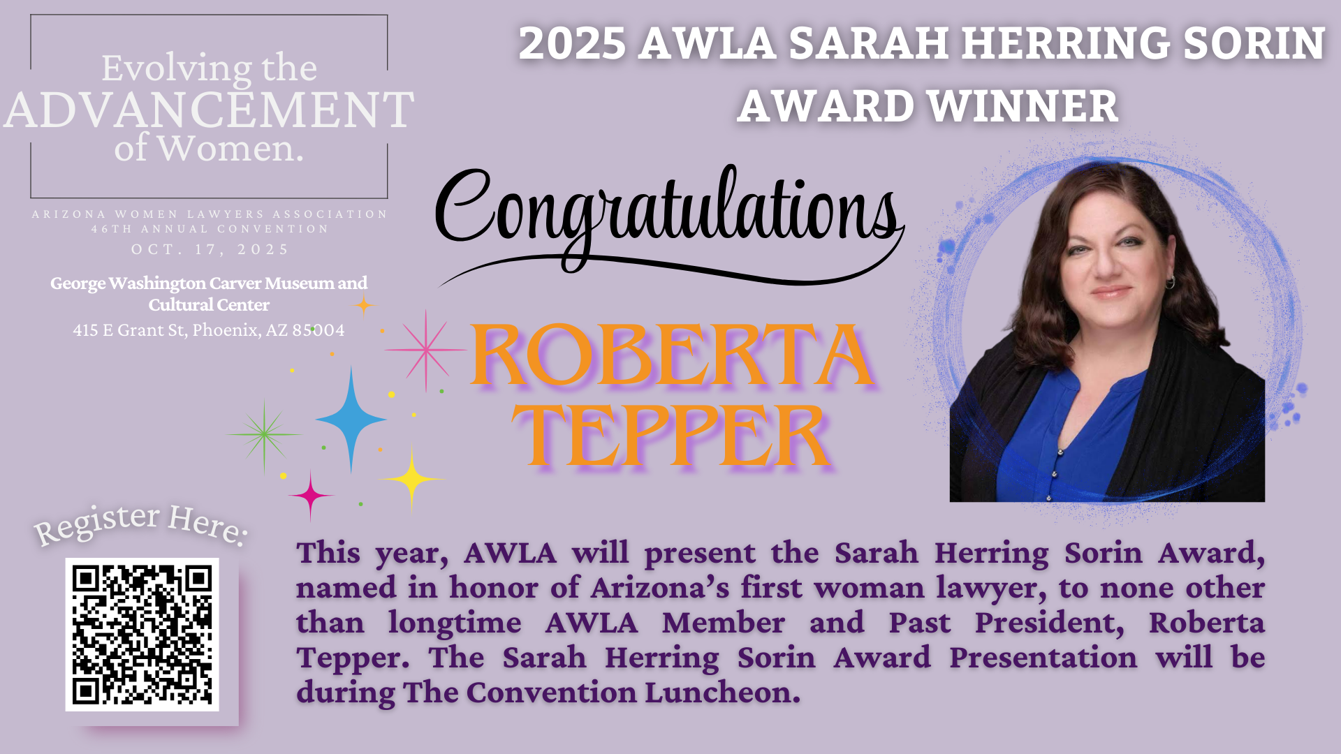 - The Annual Convention is a key fundraiser for the organization to support the ongoing substantive programming, social events, and charitable activities that promote and encourage the success of women lawyers throughout Arizona.