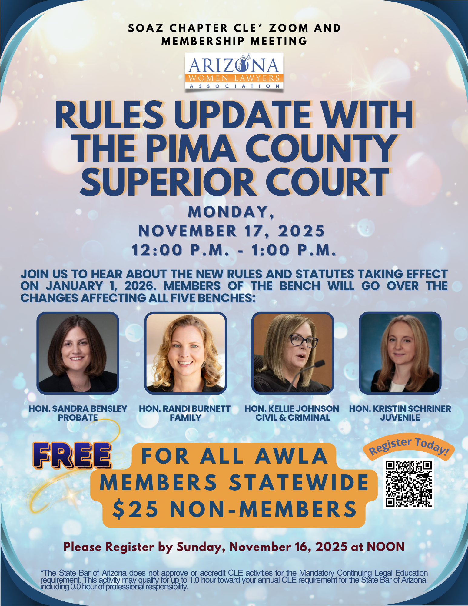 *The State Bar of Arizona does not approve or accredit CLE activities for the Mandatory Continuing Legal Education requirement. This activity may qualify for up to 1.0 hour toward your annual CLE requirement for the State Bar of Arizona, including 0.0 hour of professional responsibility.