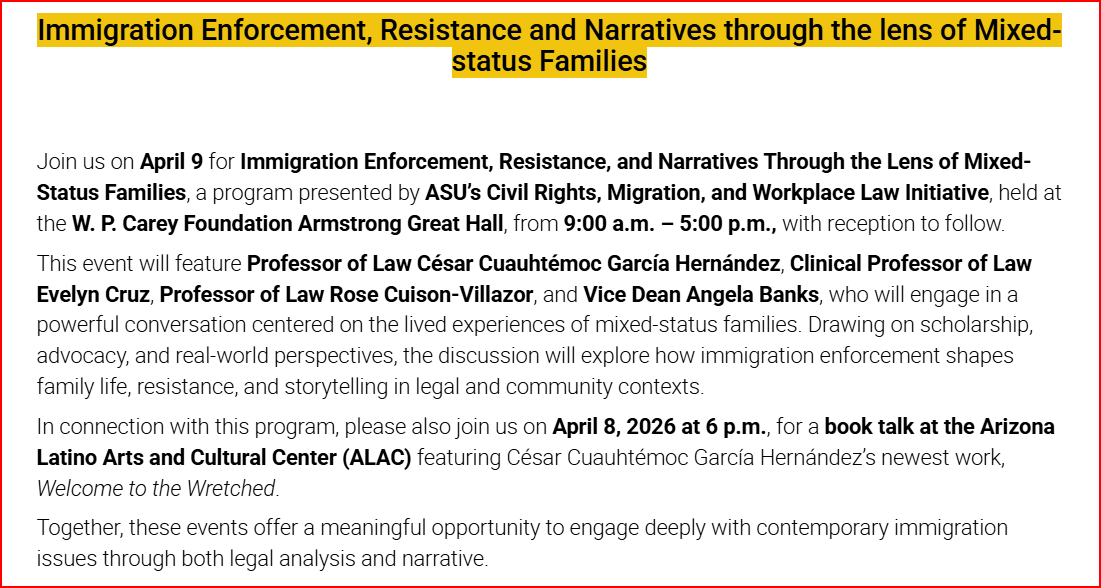ASU SDO College of Law Presents Immigration Enforcement; Book Talk on Welcome to the Wretched
